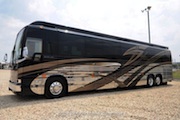 This beautiful RV is approximately 44 feet in length with a 515 HP Detroit 60 engine with side radiator, Prevost raised rail custom chassis with IFS and a tag axle, power mirrors with heat, power windows and locks, 20KW Powertec generator, 2 power patio awnings, utility power cord reels, Wasboso heating system, pass-thru storage, full length slide-out cargo tray, aluminum wheels, exterior grill, keyless entry, exterior sink, 20K lb. hitch, Prevost leveling system, color 3 camera monitoring system, exterior entertainment center, 4 Outback inverters, ceramic tile heated floors, solid surface counter, multi-plex lighting, all electric coach, all hardwood cabinets, dual pane windows, convection microwave, dishwasher, trash compactor, 3 door residential refrigerator with ice maker, washer/dryer stack, memory foam mattress, safe, 4 ducted roof A/Cs with heat pumps and 4 LCD TVs.