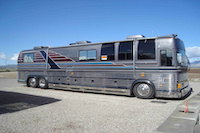 This coach is always stored in a heated warehouse when not in use, last trip taken was in August 2019. Some maintenance items are as follows: House batteries 4 - 8D acid batteries 6-2019, chassis batteries 4 group 31 sealed batteries 7-2019, serviced engine oil, filter, fuel filter, 7-10-2019 (165649 miles), upgraded high flow radiator fan11-2015, all 8 air bags 11-2015, new drivers AC compressor and condenser 9-2015, all roof ac units have been tapped so they can be recharged with R22 as needed, new house water pumps 11-2016, transmission cooler, transmission is running synthetic oil - pan was dropped by Stewart & Stevenson in Denver, Co and inspected - clean and in excellent condition, new power steering pump 6-2018, new house battery alternator 190 amp 1-2014, polished aluminum wheels, front tires 4-2019 Continental "Coach HA3" 315/80R22.5, drivers 9-2014 Bridgestone R1B R250 12/R22.5, tag tires 9-2014 Firestone FS 400 - 315/80R22.5, fog, curb & docking lights, two 11 gal Attwood water heaters, CB not working, generator battery boost from house batteries, Webasto boiler provides heat for water heaters and cabin heat (rebuilt 10-2013) , satellite dish, Prevost and Country Coach manuals,